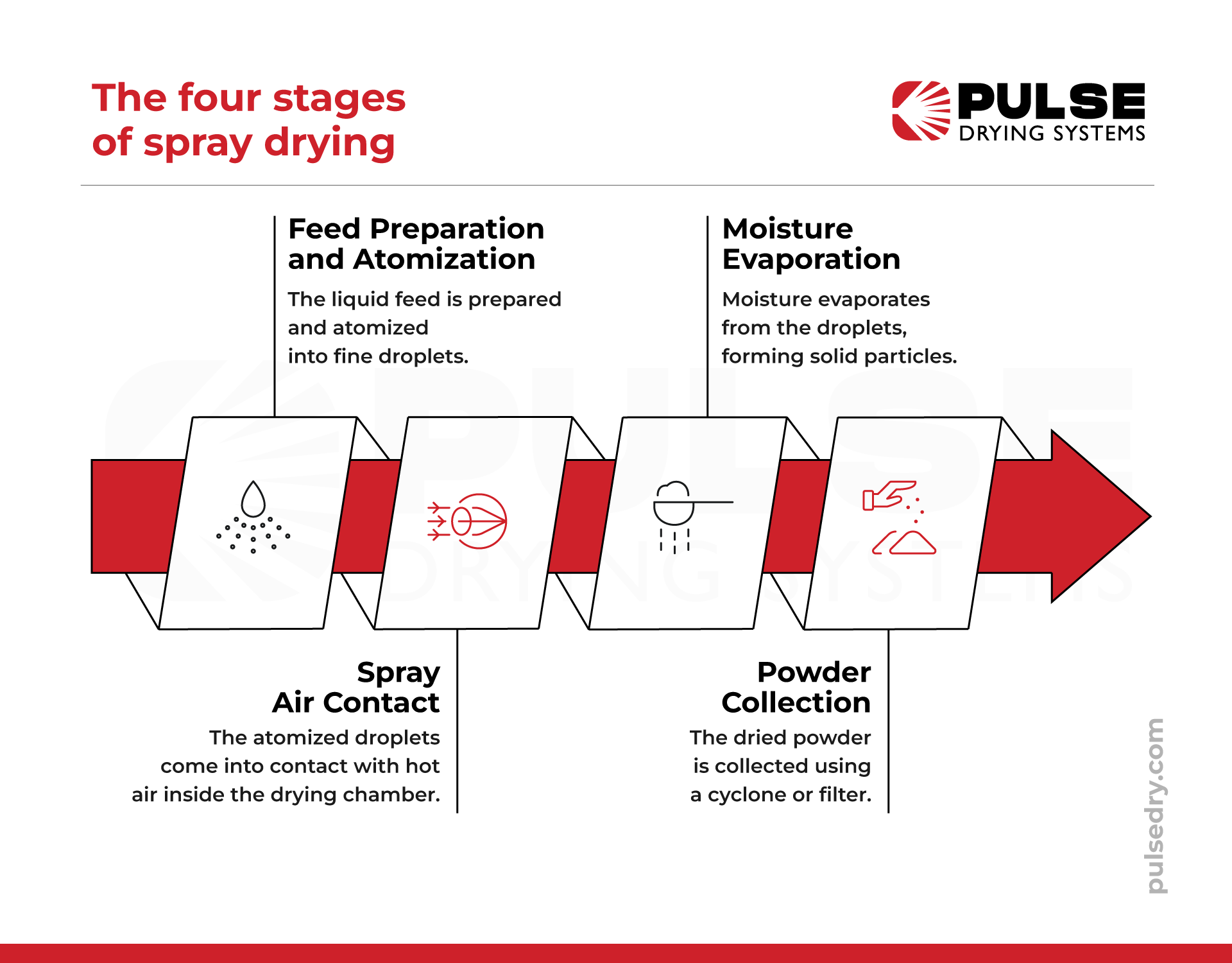 Understanding the stages of spray drying is essential for process optimization. Pulse Drying Systems offers spray dryers engineered for excellence at every stage, featuring our innovative Pulse Atomization system that ensures optimum powder characteristics.. Contact our team to learn how Pulse spray dryers can optimize each stage of your drying process for superior results.
